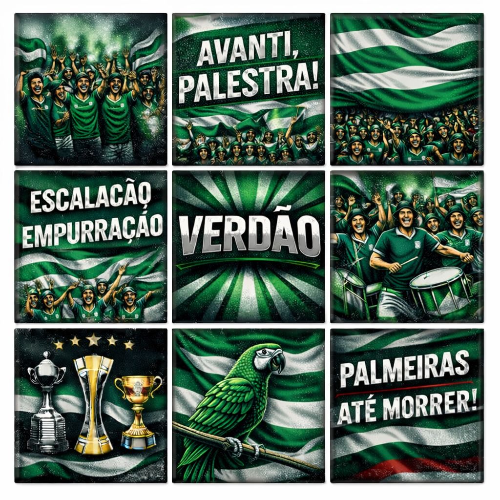 Esta coleção de azulejos celebra a paixão, a força e a tradição da torcida alviverde. Inspiradas na vibração das arquibancadas, as peças traduzem a emoção de cada jogo: bandeiras ondulando, cantos que ecoam pelo estádio e a energia contagiante de uma torcida que transforma cada partida em um espetáculo de fé e orgulho.